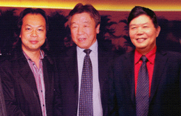 浙江天臺山梅氏宗譜 中國抗癌協(xié)會常務理事、河南省抗癌協(xié)會會長楊文獻教授和《百花散》傳人梅先生合影